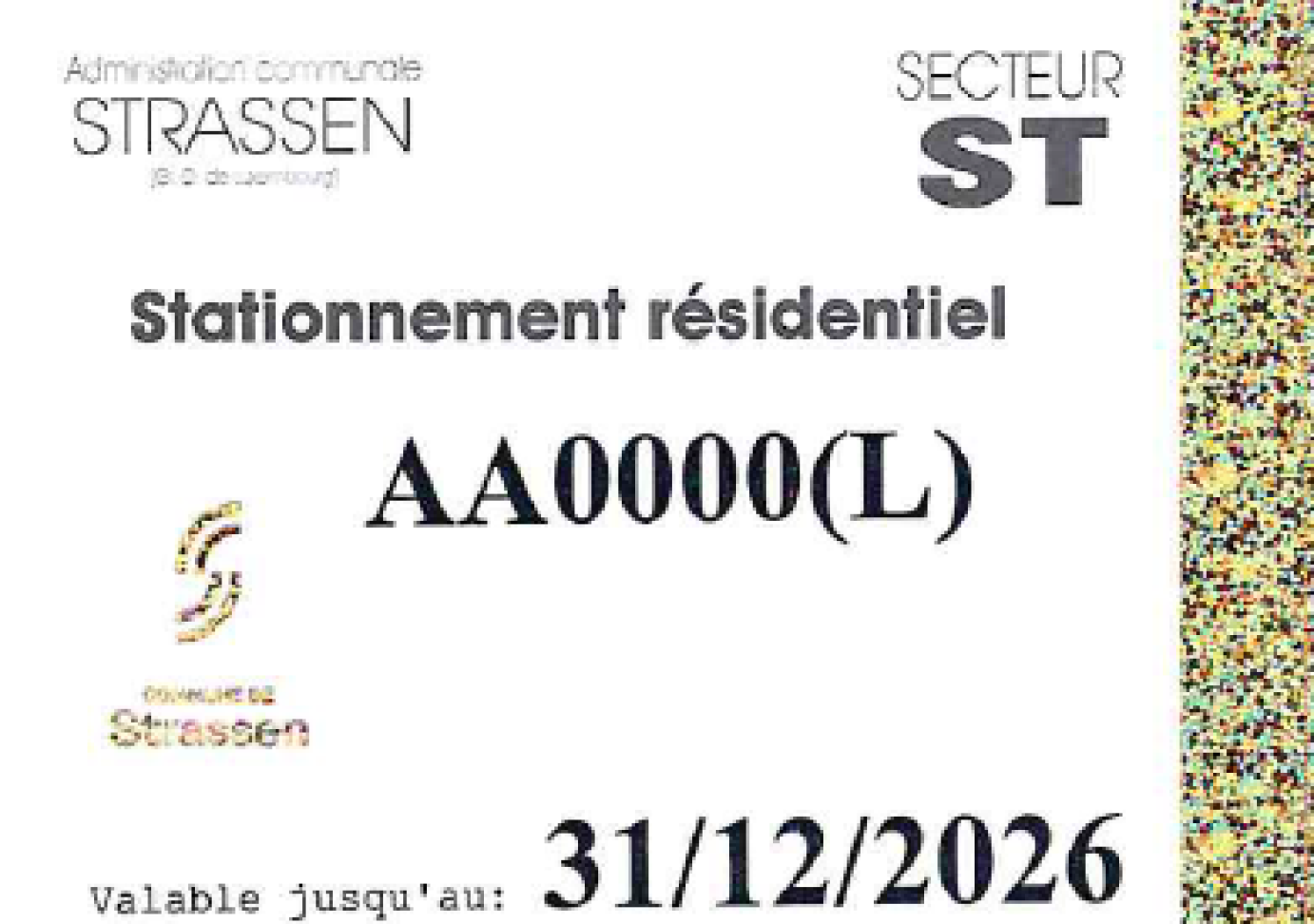 Les nouvelles vignettes pour le stationnement résidentiel 2026 à Strassen seront expédiées au cours des semaines 51 et 52 . Nous vous prions de vérifier si les données sur votre/vos vignette(s) actuelle(s) (plaque d’immatriculation) sont exactes. En cas de changement, veuillez en informer le Service Circulation avant le 5 décembre 2025 par e-mail: circulation@strassen.lu.